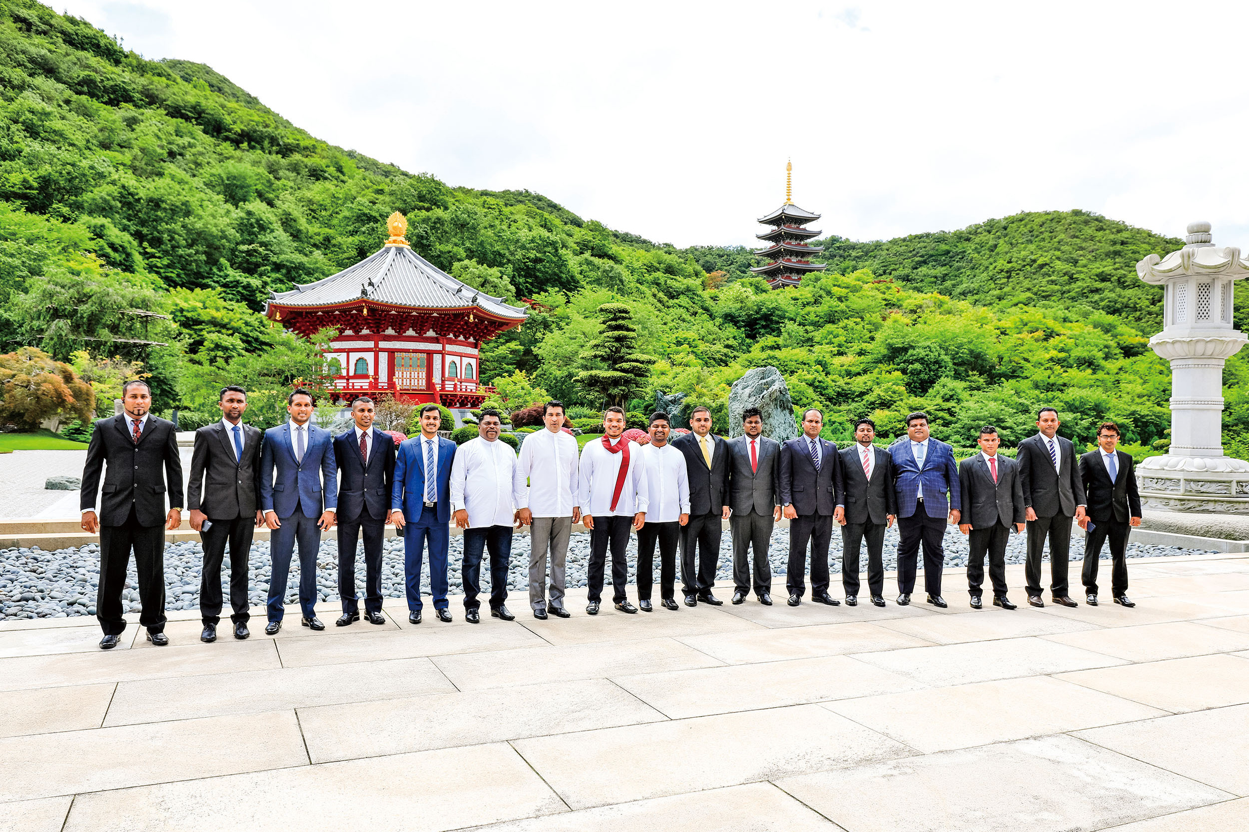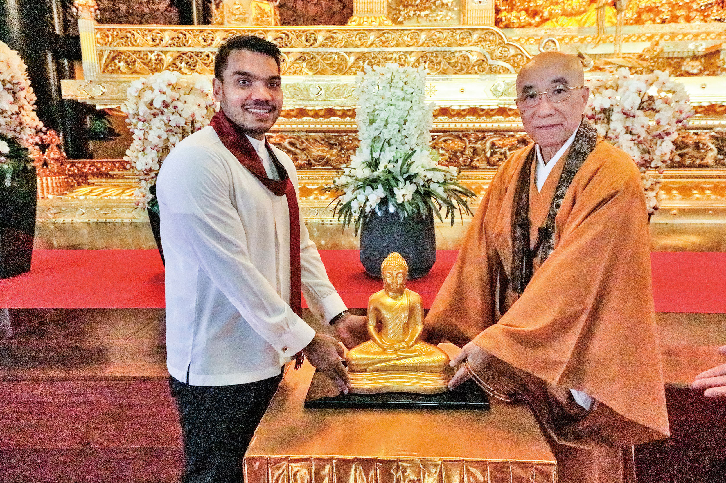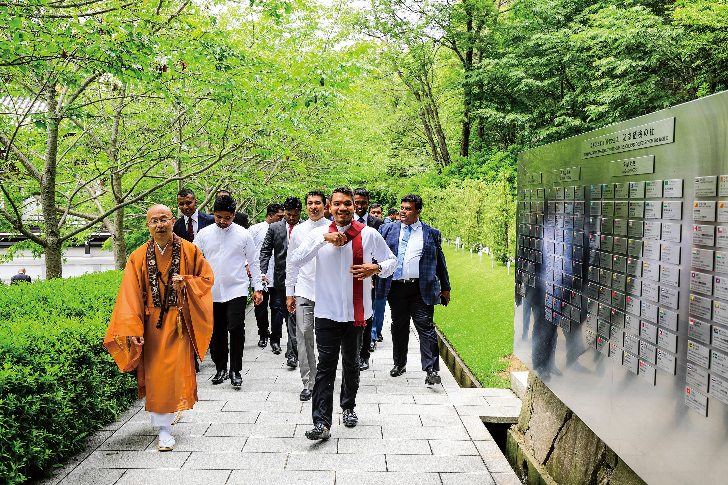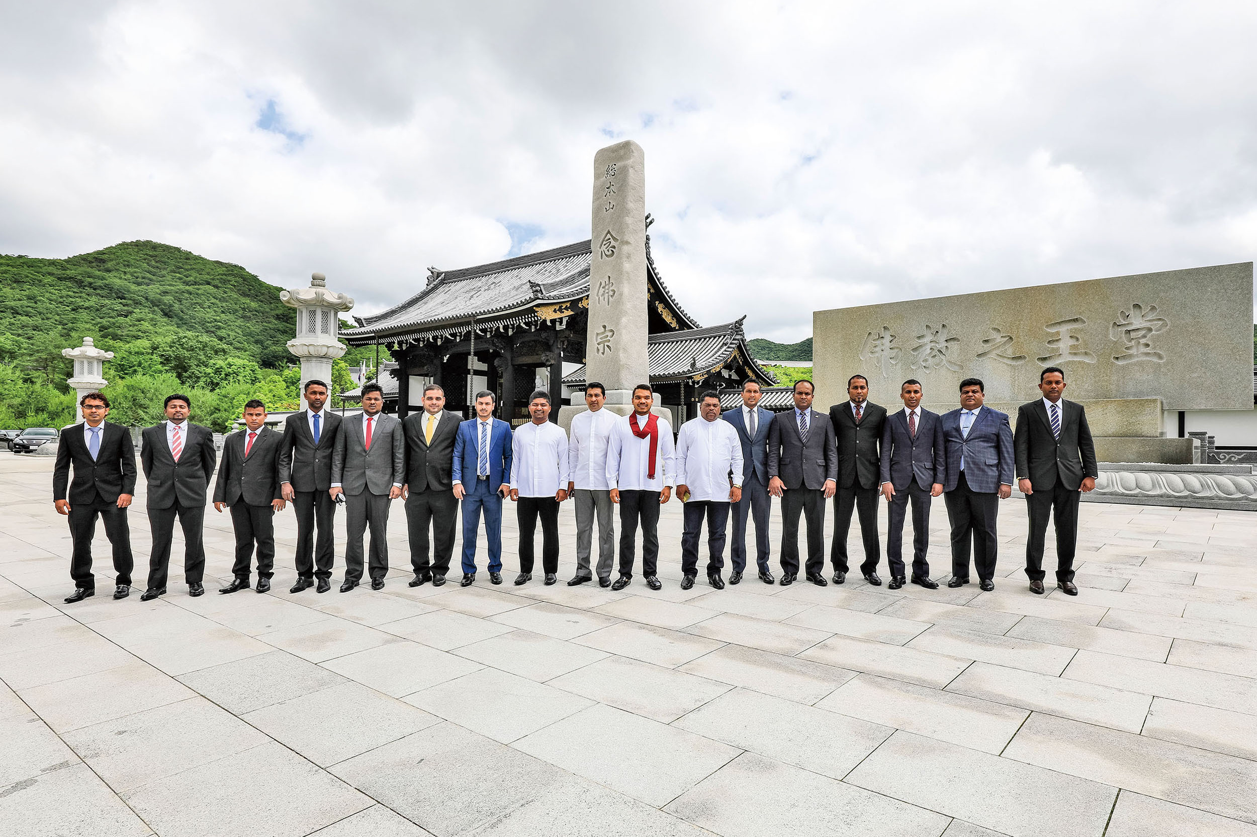 スリランカ第五代大統領 マヒンダ・ラージャパクサ閣下御子息ナマル・ラージャパクサ氏を始めとする国会議員、及び、スリランカの篤信の仏教徒御一行が、「佛教之王堂」念佛宗 総本山に参詣されました。釈迦堂では、スリランカ第五代大統領閣下による奉納仏を始め、全世界より奉納された御仏像に合掌礼拝され、静かに祈りを捧げられました。