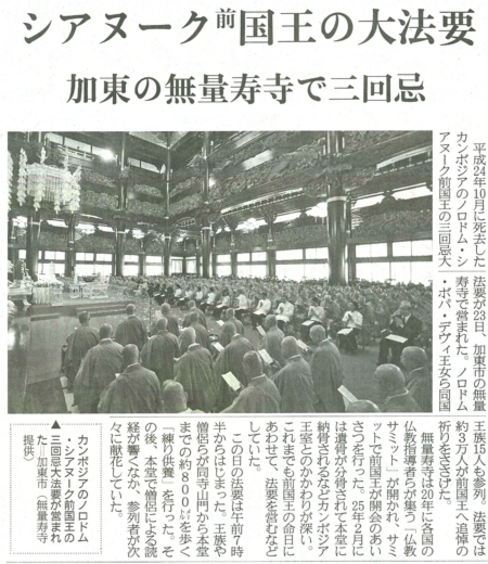 この度の「故シアヌーク前国王陛下 三回忌大法要」、