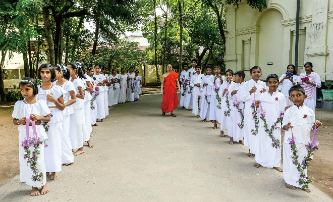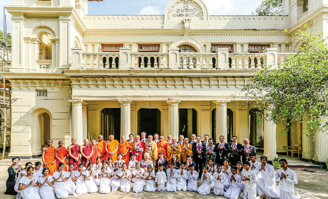 平成8 年、コロンボのバンダラナイケ記念国際会議場にて、念佛宗御開祖・佛教サミット最高顧問の説かれた大説法「大乗仏教の真髄」の開催、そして、平成10 年には、全宗派(三宗四派)の管長猊下の連名により、最高顧問に対し、最高栄誉称号が授与されて以来、スリランカ仏教 三宗四派と念佛宗は固い絆で結ばれています。