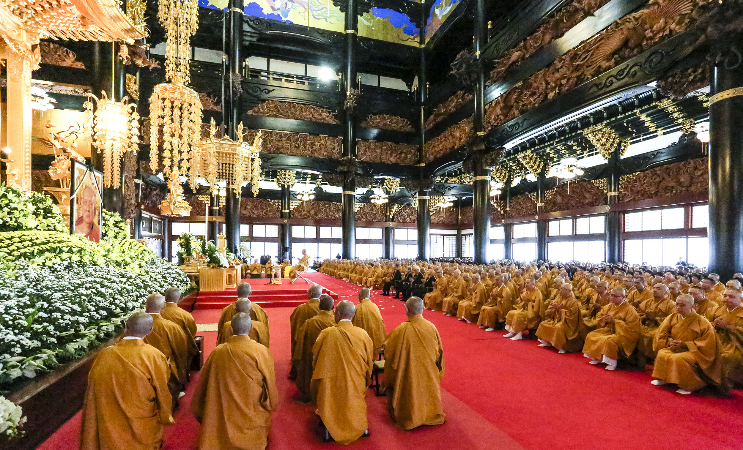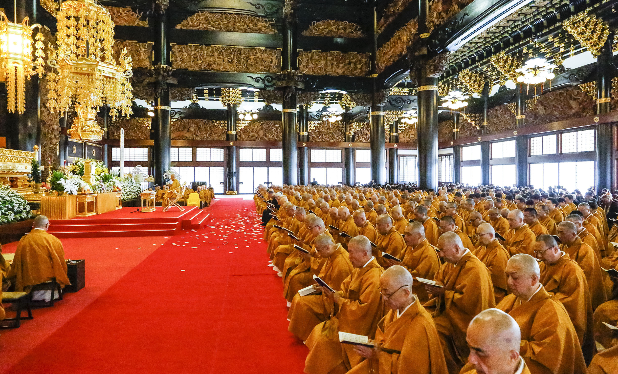 堂内を埋め尽くす僧侶・参列者による読経