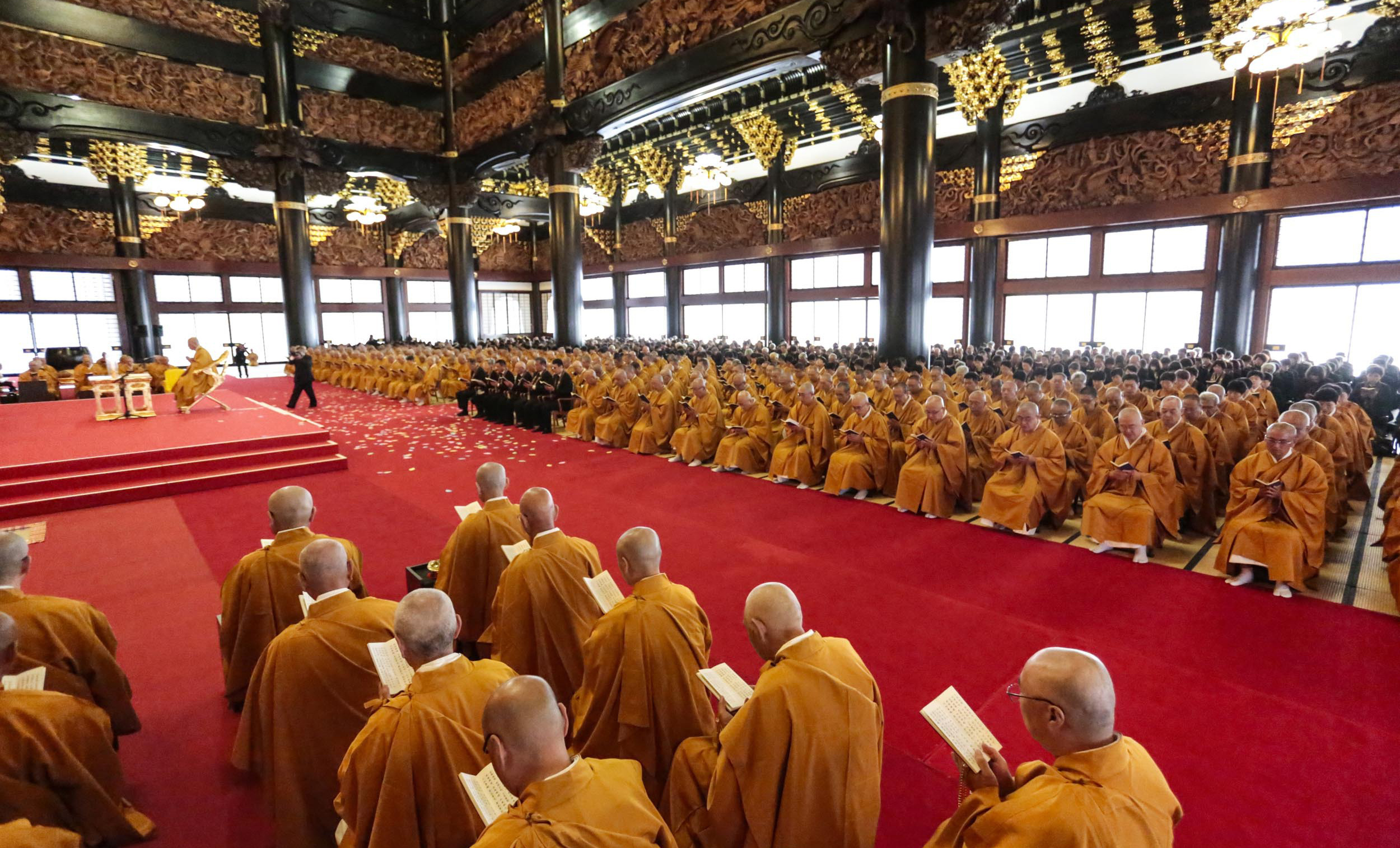 僧侶・参列者による読経が堂内にこだまする