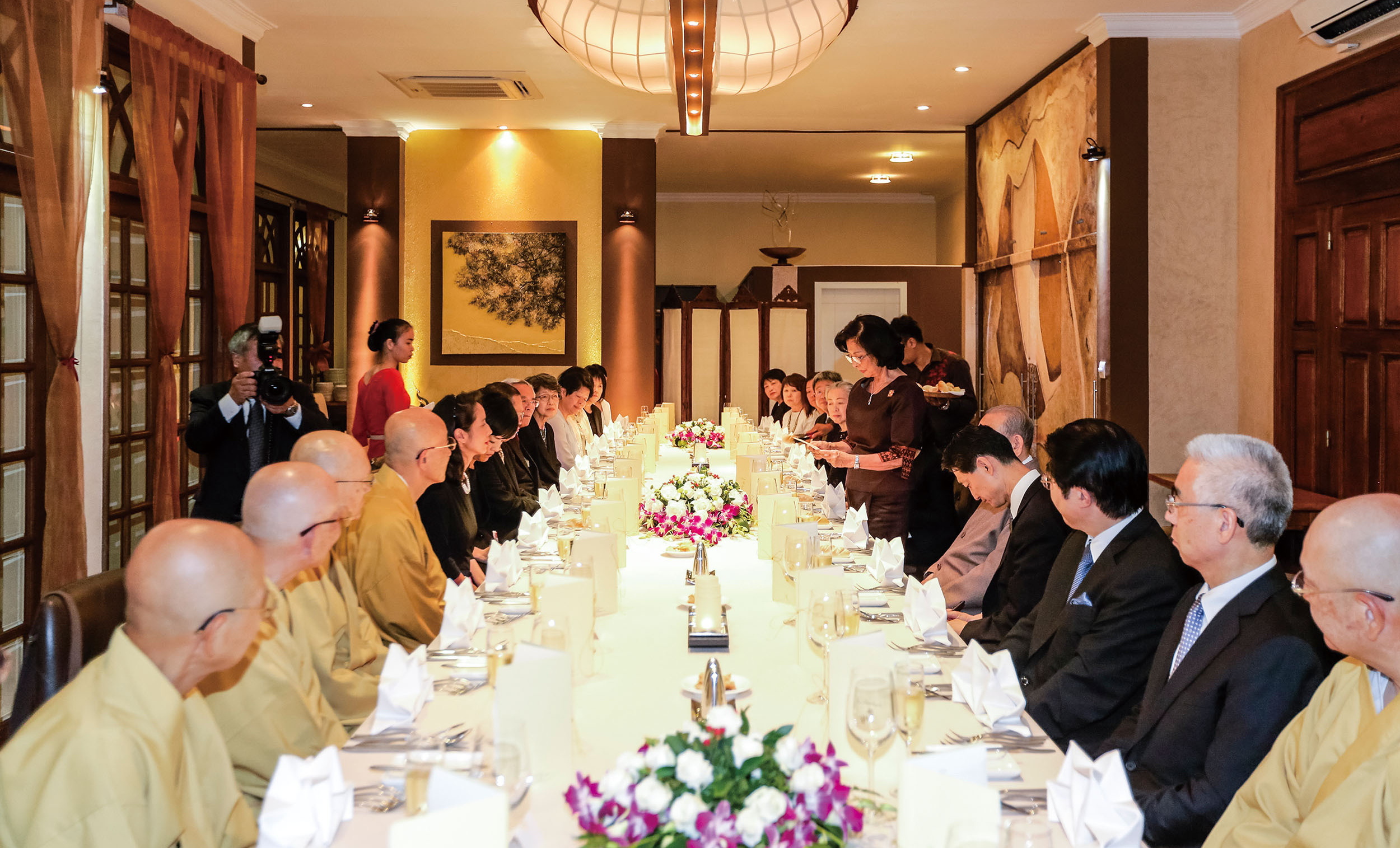 王宮での謁見終了後、念佛宗訪問団は、モニーク皇太后陛下主催の昼食会に御招待を受け、皇太后陛下御名代 ノロドム・アルンラズメイ王女殿下、ノロドム・ボパ・デヴィ王女殿下、ケック・シソダ閣下と昼食を共にしました。