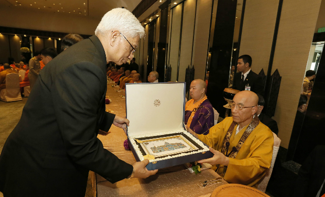 佛教サミット副会長 郡真海猊下は、平成22 年11 月にシリントーン王女殿下と共に、念佛宗総本山「佛教之王堂」に参詣された、タイ王国首相顧問 兼外務副大臣ウィーラサック・フートラクーン閣下(元駐日タイ王国特命全権大使)と再会を果たし、今後の仏教興隆について親しく語り合いました。