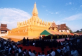 ラオスの首都 ビエンチャンにある、ラオスを代表する仏塔。ラオスのシンボルであり、国章にもタート・ルアンが描かれている。この寺院内に法王猊下の棺が祀られた。