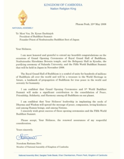 Message from the Kingdom of Cambodial
