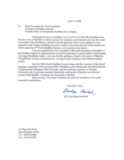 佛教之王堂 落慶法要 及び 第五回佛教サミットに寄せられた 314通の祝辞
