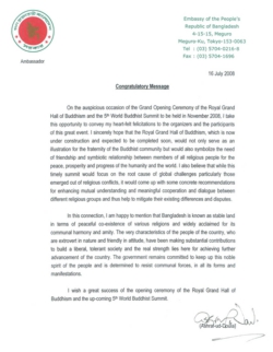 佛教之王堂 落慶法要 及び 第五回佛教サミットに寄せられた 314通の祝辞