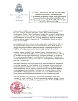 仏教最高指導者等々から、御祝いのメッセージが寄せられました。