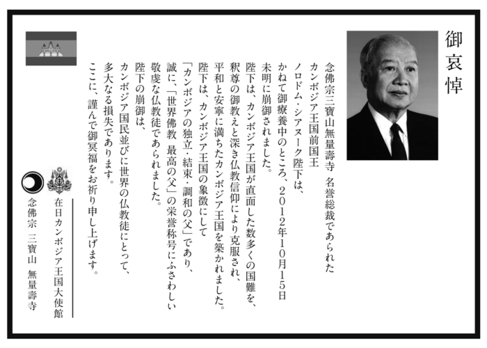 念佛宗 名誉総裁 ノロドム・シアヌーク陛下 崩御