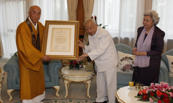 佛教サミット 全世界佛教最高会議栄誉称号「世界佛教 最高の父」 御献呈カンボジア王国 ノロドム・シアヌーク前国王陛下