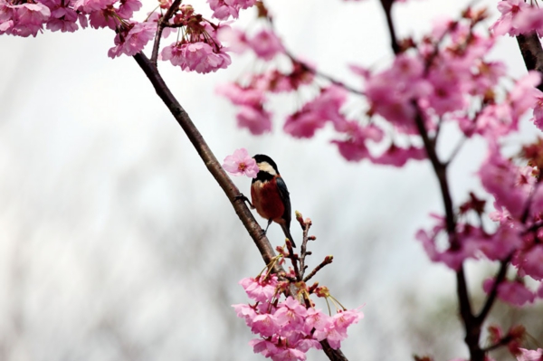 - 桜 -桜の枝に小鳥が遊ぶ