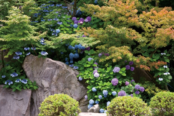 岸壁に群生する紫陽花(あじさい)