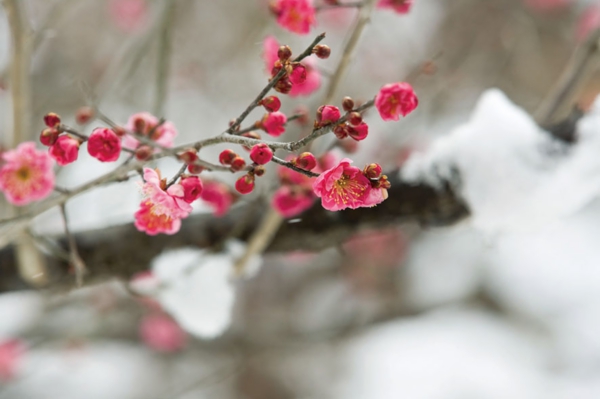 - 梅 -早咲きの梅が雪に映える