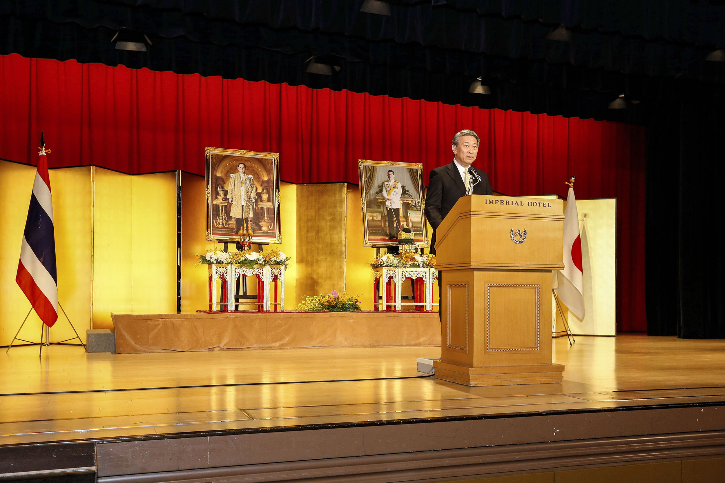 駐日タイ王国大使閣下は、 「本年も、故プミポン国王陛下の追悼大法要を、『佛教之王堂』にて執り行って頂き、誠に有難うございます。タイ王国の国民は深く感謝しております」と述べられました。