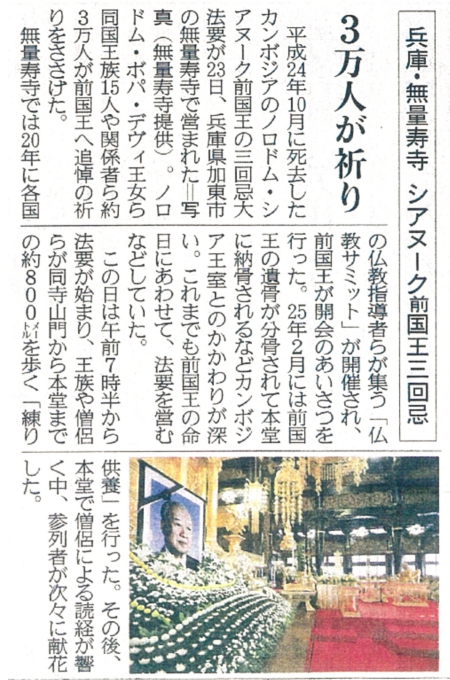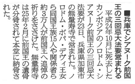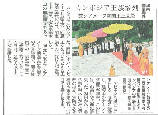 この度の「故シアヌーク前国王陛下 三回忌大法要」、