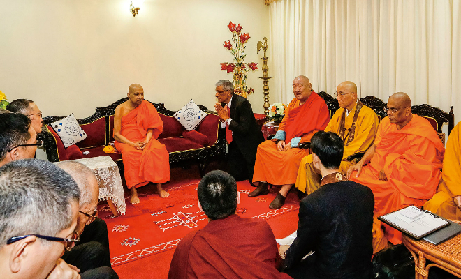 スリランカは、仏教伝播に大きな役割を担った「南伝仏教の雄」であり、伝統と格式のある各宗の管長との御会見では、仏教興隆への思いを熱く語られ、全面的な協力と支援を、力強く表明されました。