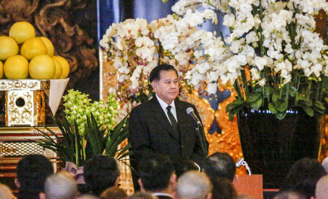 念仏を称え タイ国王陛下の御遺徳を偲び合掌される 副首相閣下