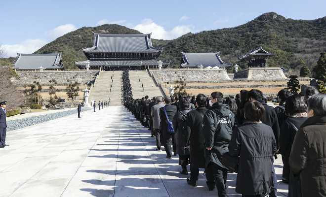 大法要の執り行われている本堂前には お焼香の列が連なる