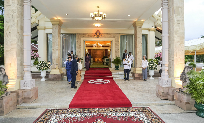 カンボジア王国 国王・皇太后両陛下・王室の方々が待たれる 優美な庭園に囲まれた宮殿
