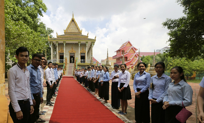 ボア・クリ法王猊下自坊 本堂まで続く カンボジア王国の若き青年たちによる歓迎