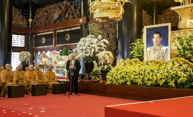 平成 29 年 7 月 28 日、タイ王国ラーマ10 世マハー・ワチラロンコン国王陛下の御健康と御長寿、並びに、タイ王国の永久なる繁栄を祈念し、全世界 五億二千万人の仏教徒の聖地「佛教之王堂」にて、国王陛下 65 歳御生誕祝賀記念式典が開催されました。