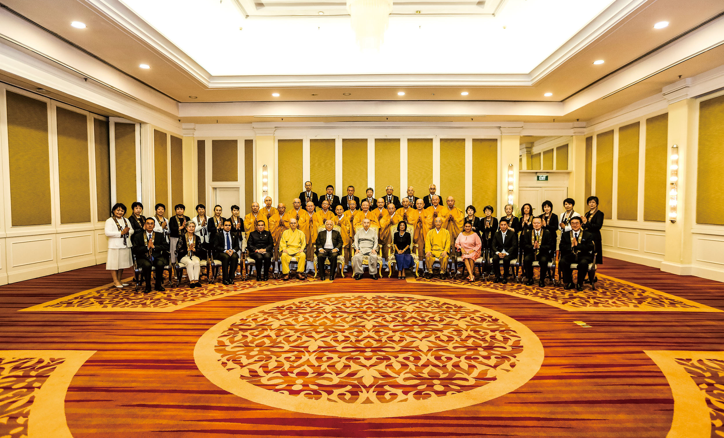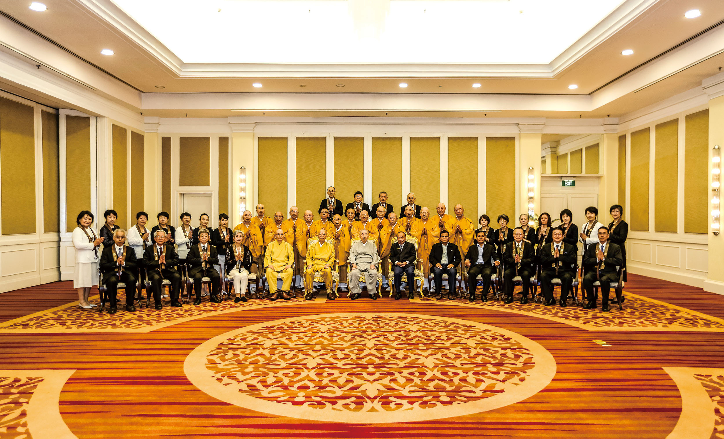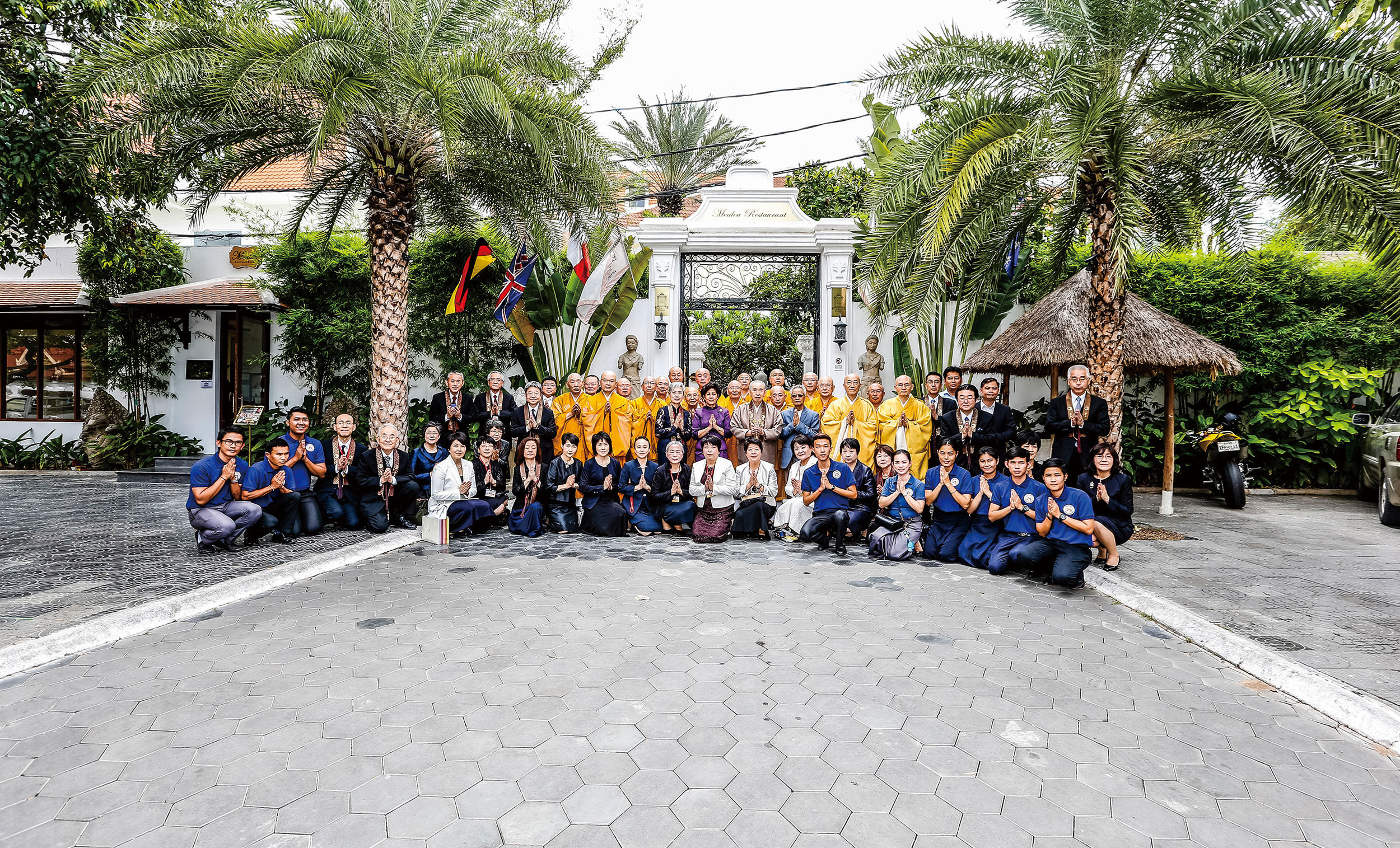 また、カンボジア王室と政府を代表して、ノロドム・ボパ・デヴィ王女殿下 御家族、ノロドム・チャクラポン王子殿下 御家族、フム・チェイム宗教大臣閣下、ヴァーン・ヴァン宮内庁儀典長閣下が、滞在ホテルまで表敬に訪れられました。会見の中で、カンボジア王室・政府の皆様は、回を重ねるごとに広がっていく「仏教の日」に期待されると共に、国王陛下の御名を冠した七葉窟大講堂・王本殿が、世界への仏教興隆に寄与することに、大きな感謝と誇りを示されました。