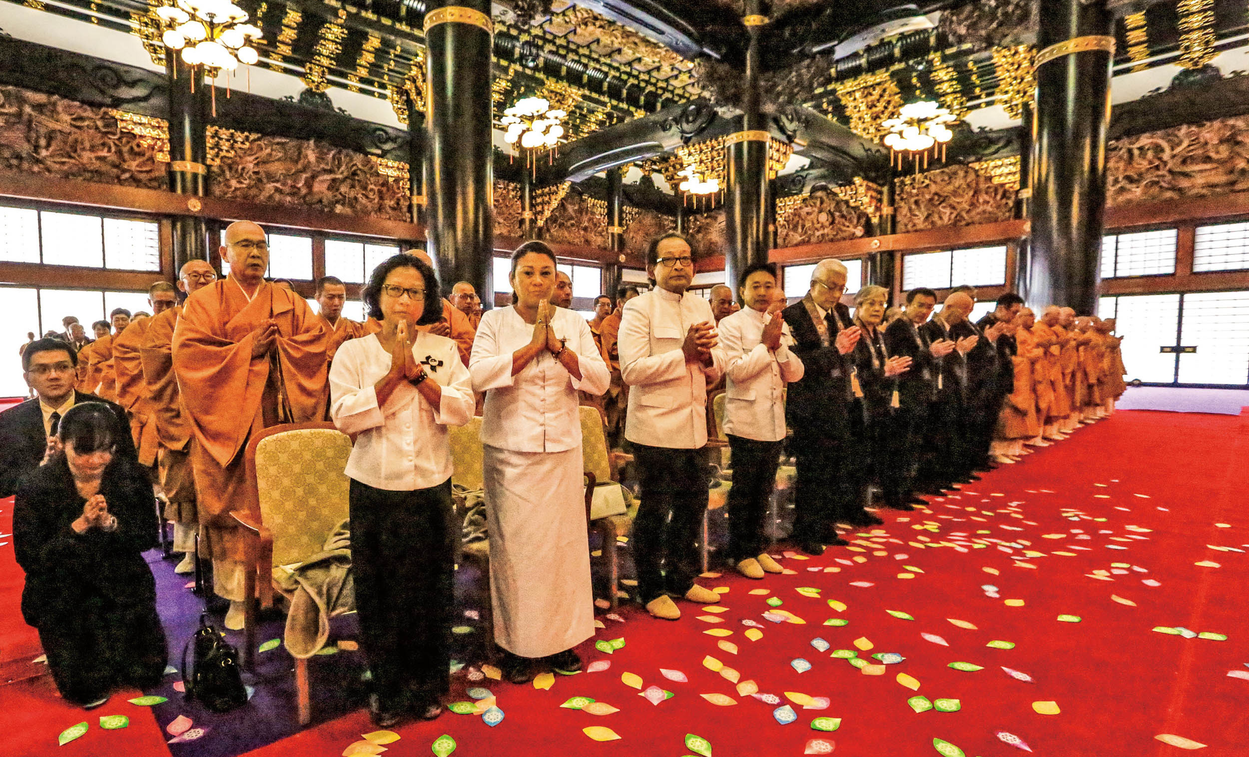 「佛教之王堂」本堂 宮殿前に設えられ 美しい花々によって荘厳された