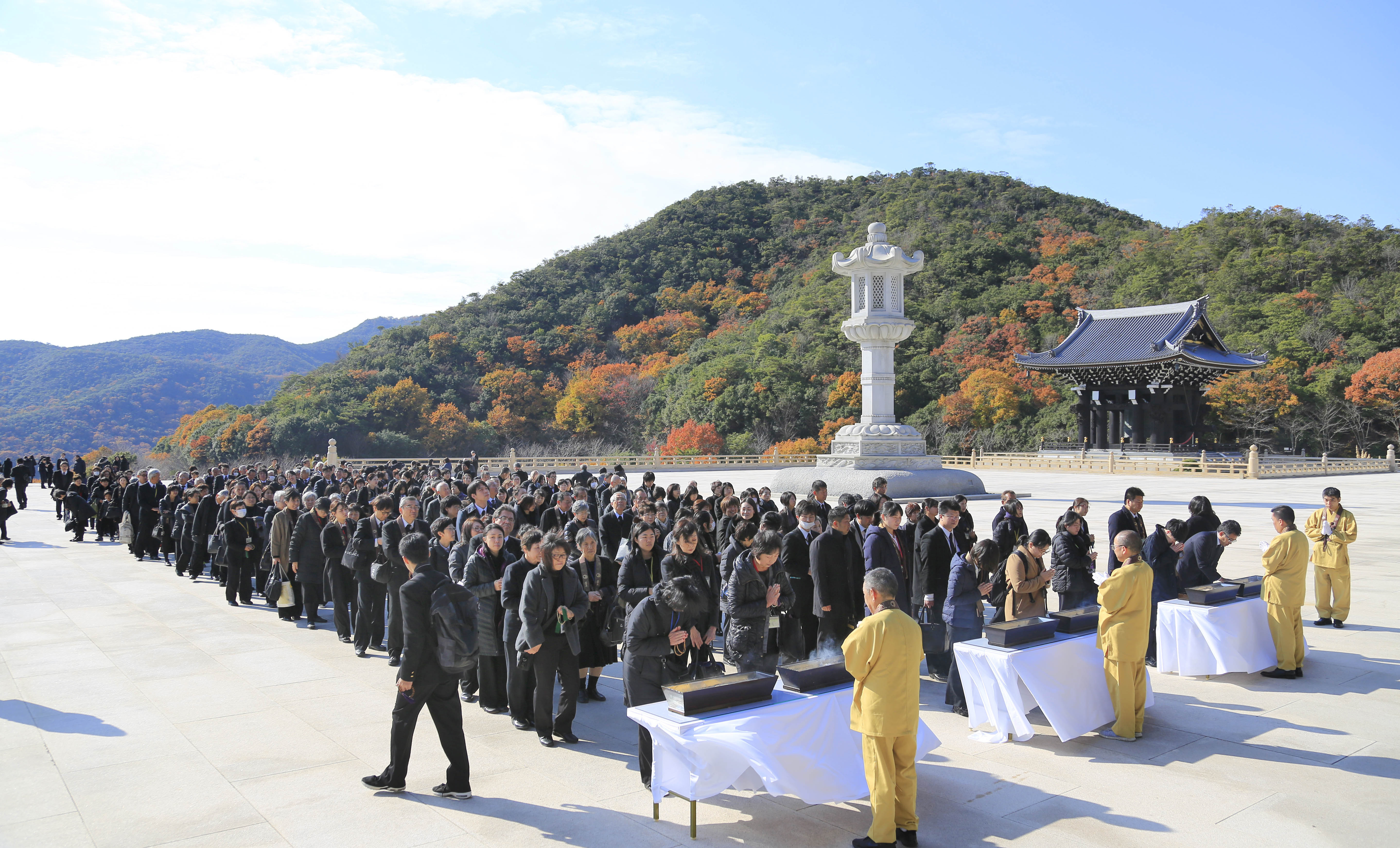 令和元年12月1日、聖地「佛教之王堂」において、郡真海長老を導師として、数多の僧侶・尼僧・檀信徒が参列する中、ノロドム・ボパ・デヴィ王女殿下の御聖骨奉納 追悼大法要が、厳粛に執り行われました。王女殿下の御遺族である、シソワット・モニコソマ王女殿下(故王女殿下 御息女)御夫妻、ノロドム・チャンシタ王女殿下(故王女殿下 御息女)、シソワット・テッソ王子殿下(故王女殿下 御従弟)が、はるばるカンボジア王国より来日され、御聖骨を奉納されました。