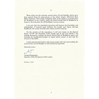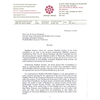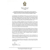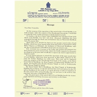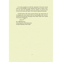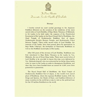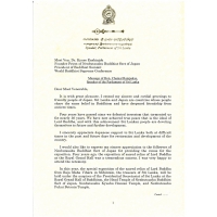 念佛宗総本山「佛教之王堂」は、計り知れないほど重要な、全世界の数多の仏教徒の心の依処であります。この度の、日本国における、お釈迦様の聖なる真身御舎利の御開帳は、スリランカ・日本両国の人々から大いに崇敬される重要な歴史的行事であり、スリランカと日本の友好親善をさらに発展させ、相互信頼をより強固に致しますことを、私は確信致しております。