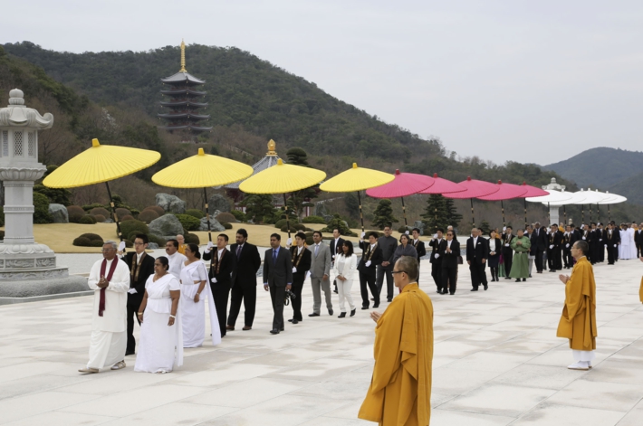釈尊真身御舎利の後を 大統領特使である 国会議長閣下御夫妻を先頭に
