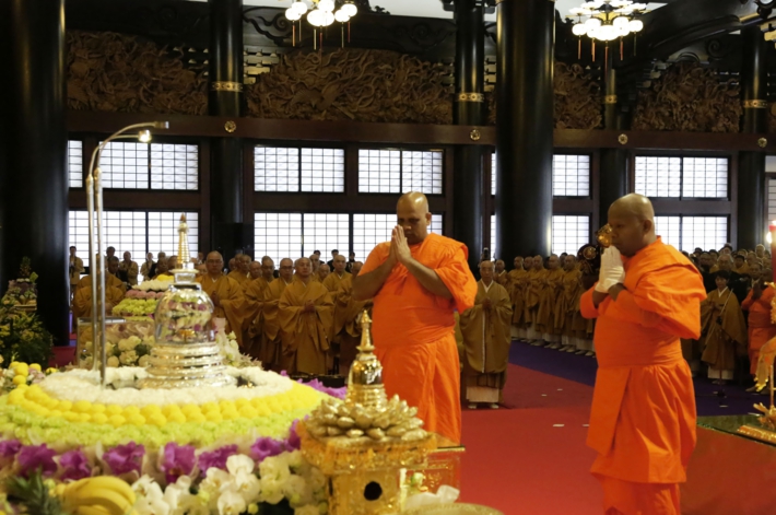 釈尊真身御舎利が中央の祭壇に遷座される