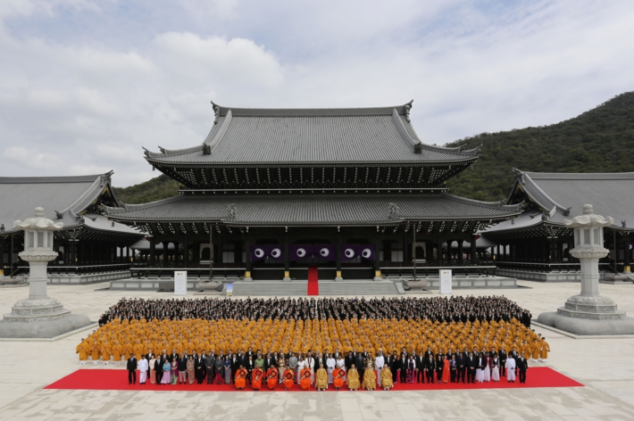 参列者一同による 本堂前記念撮影