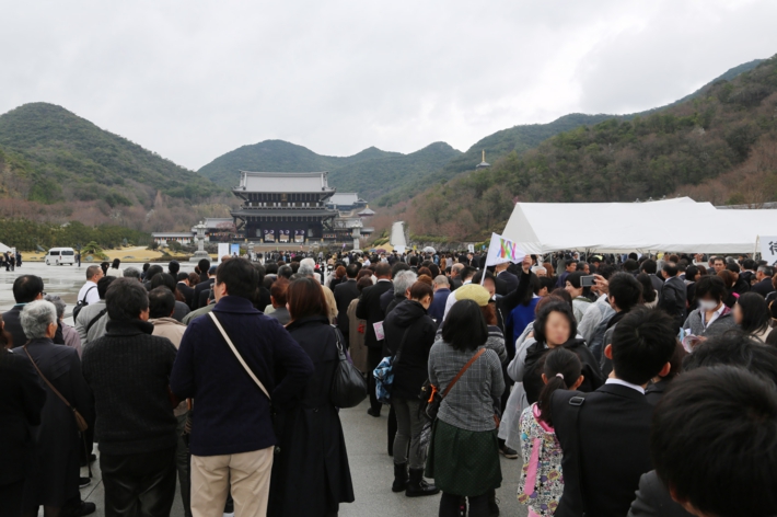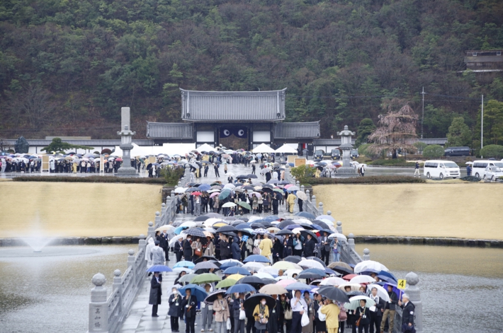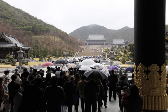雨にもかかわらず 日本全国から参詣者が訪れた