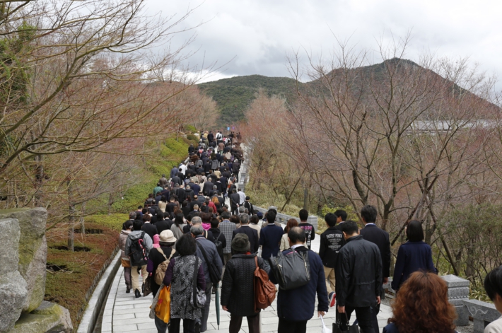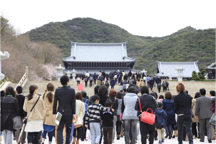 老若男女が期待に胸をふくらませ 大階段を登り本堂へと進む