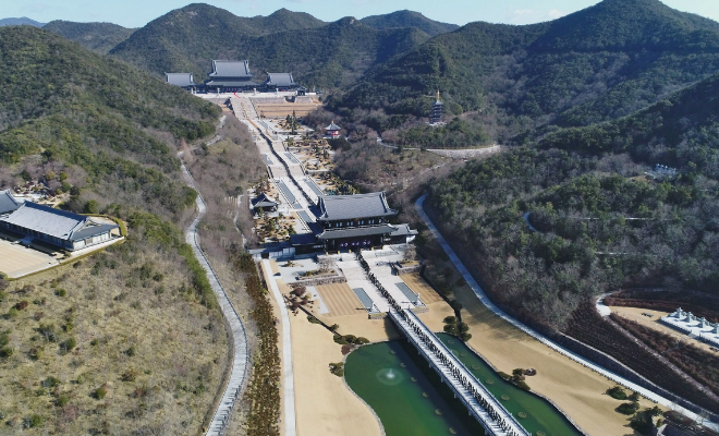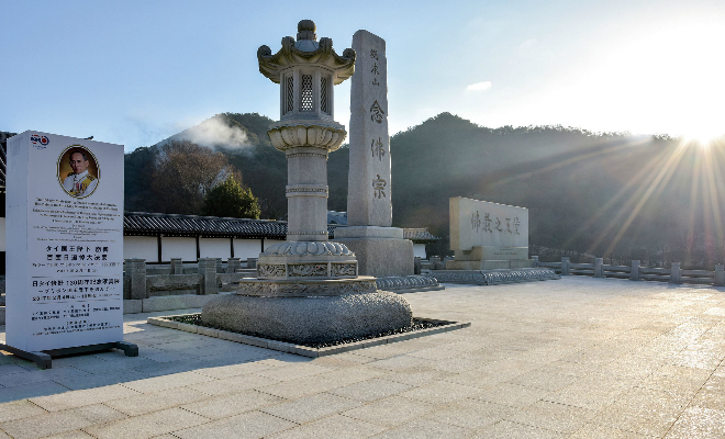 澄み切った青空に 穏やかで優しい 日輪の光が射し込む 念佛宗総本山「佛教之王堂」