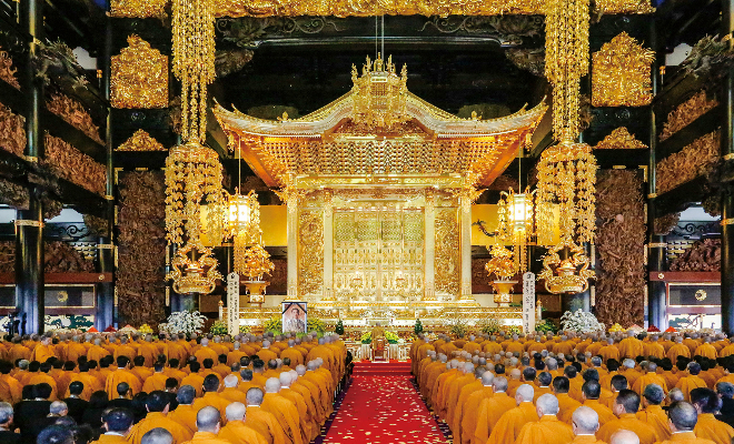 開式を待つ本堂宮殿 3,000名を超える僧侶 尼僧 参列者による タイ国王陛下崩御 百箇日追悼大法要