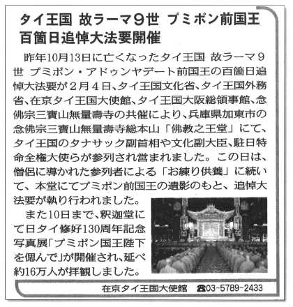 写真で振り返る タイ国王陛下崩御 百箇日追悼大法要