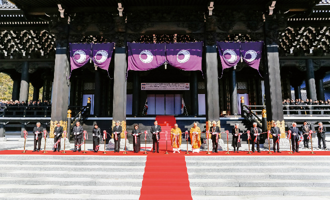 記念写真展観覧に先立ち 除幕式を見守る参列者で 埋め尽くされる境内