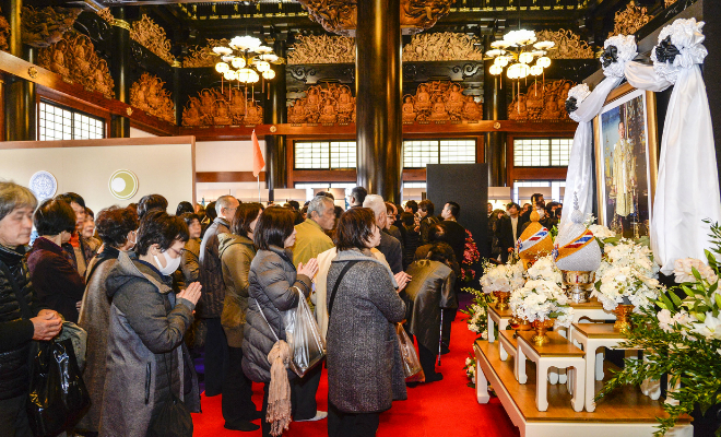 タイ国王陛下の御遺徳を偲び 心からの祈りを捧げる参列者