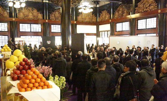 本堂を埋め尽くす 来賓 僧侶 尼僧 参列者