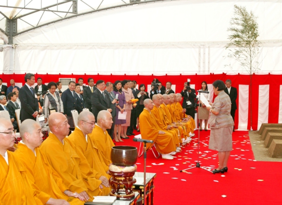 主賓 タイ王国 王女 マハー・チャクリ・シリントーン殿下、世界十三ヶ国の駐日特命全権大使閣下をお迎えして総本山「佛教之王堂」隣接地にて厳かに式典が執り行われました。