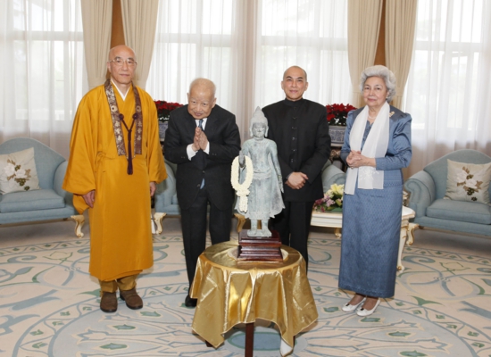 平成24年5月2日、シアヌーク陛下は、「お役に立つことがあれば、何でもさせて頂きたい」と仰せになり、御自身の御希望により、念佛宗 名誉総裁 御就任を表明されました。
