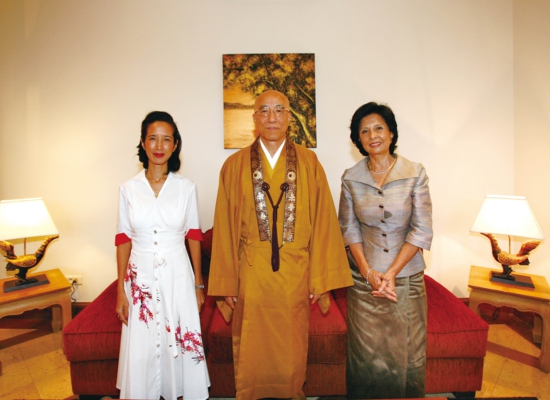 両王女殿下は、念佛宗 総本山 無量壽寺「佛教之王堂」御参詣を通じて、仏教興隆の理念に感激され、マリー王女殿下は婦人会 名誉顧問、ラトナ・デヴィ王女殿下は青年会 名誉顧問に御就任されました。