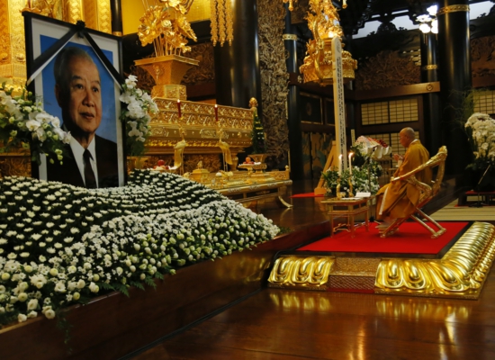 崩御の当日、10月15日、夕刻より念佛宗総本山「佛教之王堂」及び全国各地の別院に於いて、念佛宗 名誉総裁・佛教サミット名誉総裁「世界佛教 最高の父」ノロドム・シアヌーク陛下の追悼大法要が厳修されました。