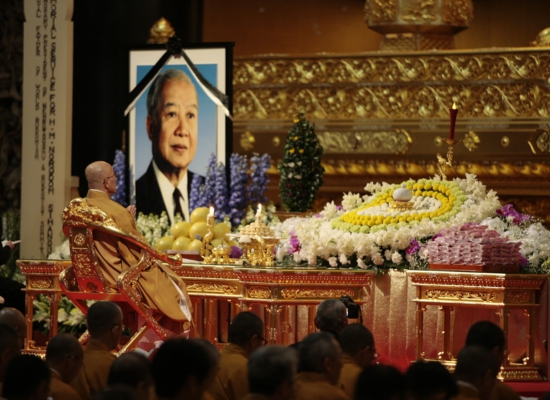 カンボジア独立の父として、全国民から深き崇敬を受けられた偉大なる佛教徒、陛下の御遺骨が、カンボジア王室と政府公認の下、御開祖御名代に正式に託され、日本の地 念佛宗総本山「佛教之王堂」へ渡られ、釈尊が入滅された仏縁深き日 2月15日に、御遺骨奉納 大法要が厳かに執り行われました。