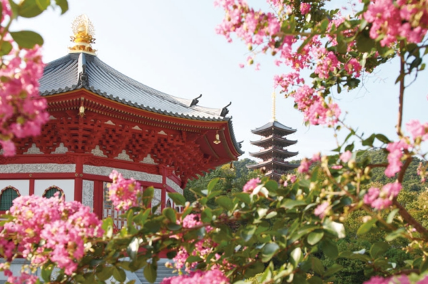 - 百日紅(さるすべり) -聖徳太子殿や五重塔とのコントラストが鮮やかな 夏の代表花