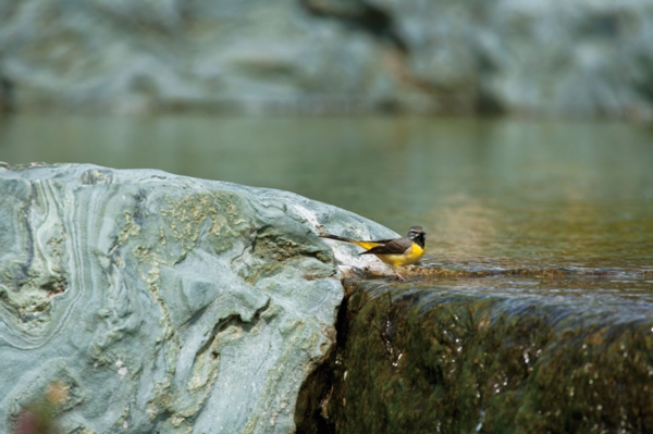 青石に遊ぶ セキレイ