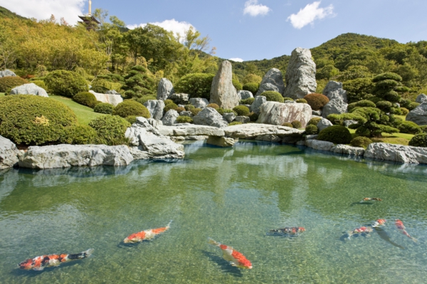 風情豊かな青石の日本庭園に「泳ぐ宝石」錦鯉が優雅に泳ぎます。