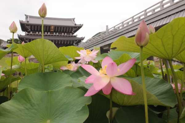 夏には月影池の蓮が大輪を咲かせます。