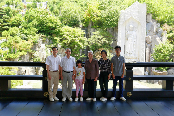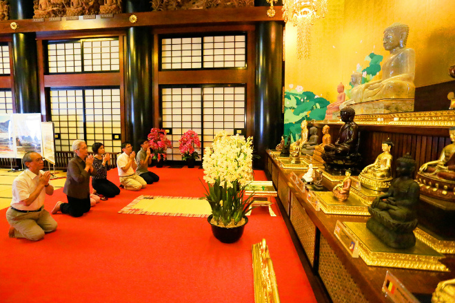 ベトナムを始めとする 世界各国の奉納仏に 御家族一同で 合掌礼拝される